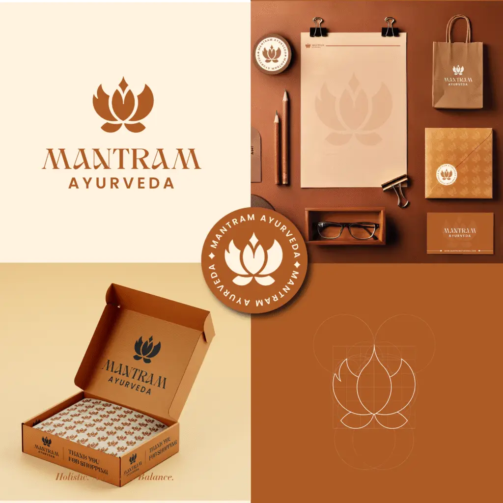A warm and earthy branding design crafted for an Ayurvedic brand. Inspired by holistic wellness and tradition, this identity uses calming colors and natural elements to build trust and represent balance and healing.