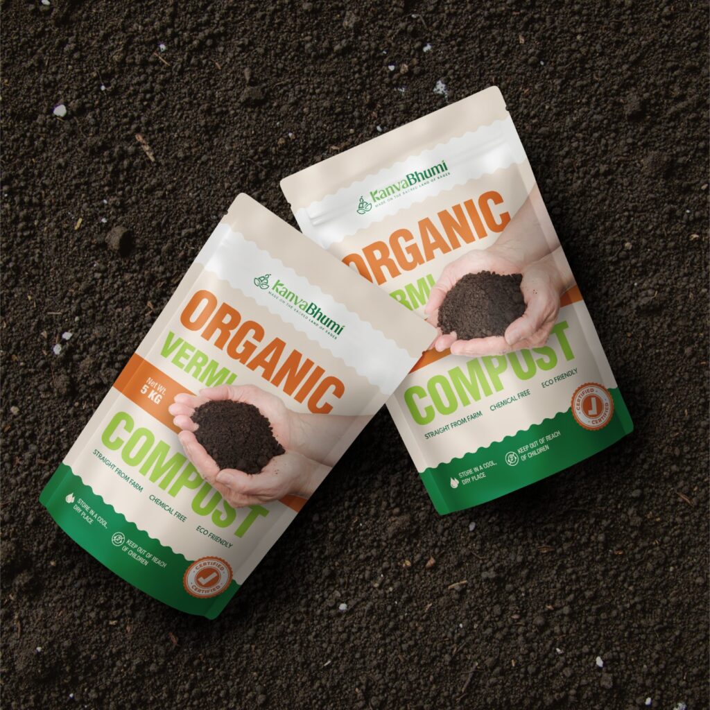 Designed for an eco-friendly look, this packaging reflects the organic and natural essence of Kanva Bhumi’s vermi compost. Earthy colors and clean visuals highlight its use in healthy farming and soil care, giving it a fresh, trustworthy appeal.